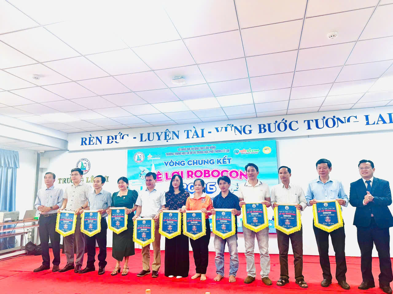Hướng tới tinh thần sáng tạo, đam mê khoa học công nghệ và giáo dục STEM, học sinh Trường THPT Phan Bội Châu – Nam Dong đã tích cực tham gia Hội thi “Robocon Lê Lợi” lần thứ VI, năm 2026. Hội thi diễn ra trong 02 ngày 18-19/4/2026 tại tại Trường THCS & THPT Lê Lợi, Phường Phan Thiết, tỉnh Lâm Đồng với sự góp mặt của 16 đội thi đến từ các trường THPT trên địa bàn tỉnh Lâm Đồng. Năm nay, là lần đầu tiên trường THPT Phan Bội Châu – Nam Dong tham gia sân chơi Robocon đầy trí tuệ và sáng tạo với 02 đội thi gồm 04 học sinh. Đội 1 do cô Nguyễn Thị Tú Oanh làm huấn luyện viên cùng 02 học sinh lớp 11A1 (Nguyễn Kim Thành và Nông Duy Lộc) và Đội 2 do cô Nguyễn Thị Thùy Linh làm huấn luyện viên cùng 02 học snh lớp 10A1 (Tô Anh Tú và Phan Hữu Lộc).