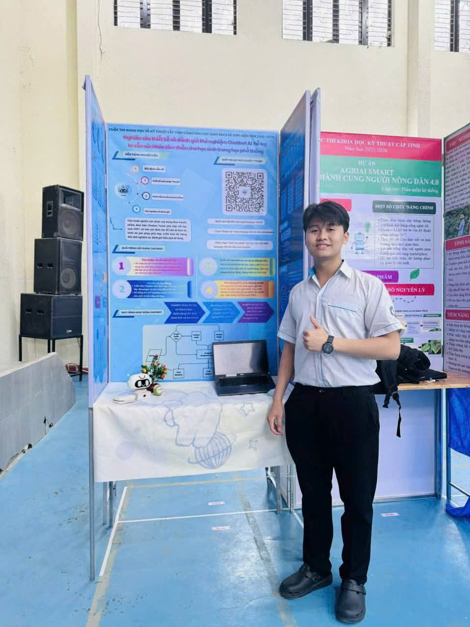 2. “Nghiên cứu thiết kế và đánh giá thử nghiệm Chatbot AI hỗ trợ tư vấn sức khỏe tâm thần cho học sinh trung học phổ thông” của Nguyễn Kim Thành (Do cô Nguyễn Thị Tú Oanh – Trường THPT Phan Bội Châu – Nam Dong hướng dẫn);
