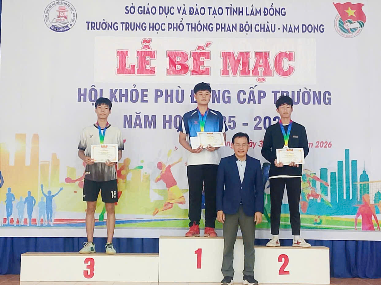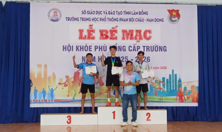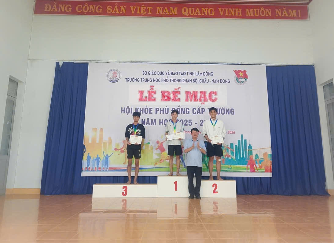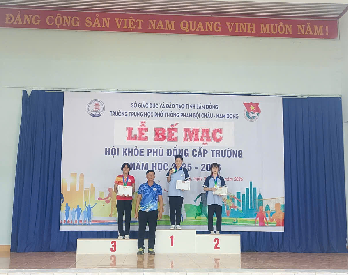Sáng ngày 31/01/2026, vào lúc 10 giờ 00, Trường THPT Phan Bội Châu – Nam Dong long trọng tổ chức Lễ Bế mạc Hội khỏe Phù Đổng cấp trường năm học 2025 – 2026, nhằm đánh giá công tác tổ chức, ghi nhận những nỗ lực của Ban Tổ chức, Ban Trọng tài, Tổ phục vụ và các vận động viên; đồng thời tuyên dương, khen thưởng các tập thể, cá nhân đạt thành tích cao.