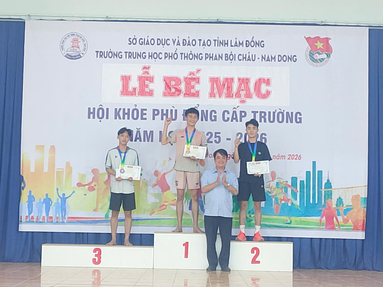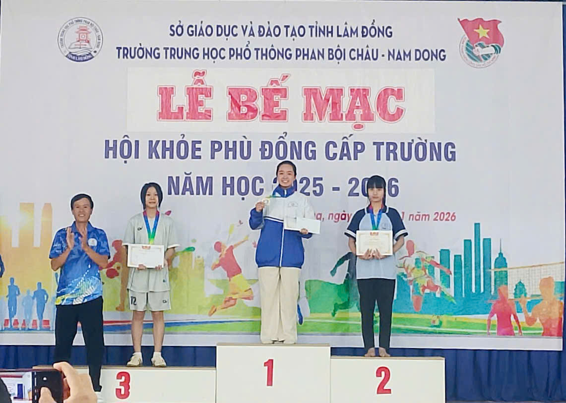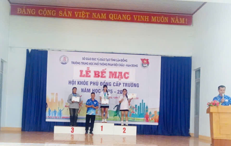 Sáng ngày 31/01/2026, vào lúc 10 giờ 00, Trường THPT Phan Bội Châu – Nam Dong long trọng tổ chức Lễ Bế mạc Hội khỏe Phù Đổng cấp trường năm học 2025 – 2026, nhằm đánh giá công tác tổ chức, ghi nhận những nỗ lực của Ban Tổ chức, Ban Trọng tài, Tổ phục vụ và các vận động viên; đồng thời tuyên dương, khen thưởng các tập thể, cá nhân đạt thành tích cao.