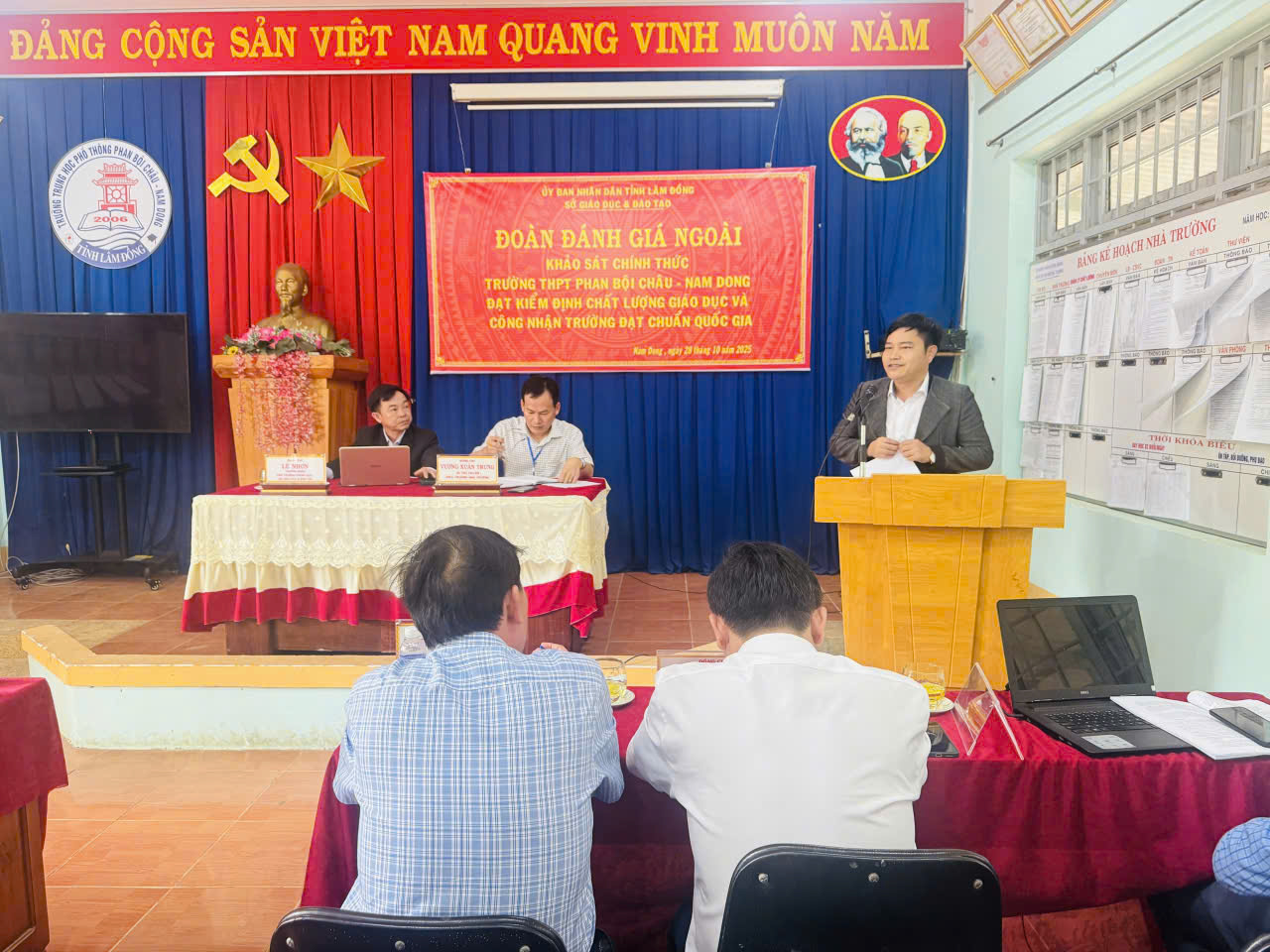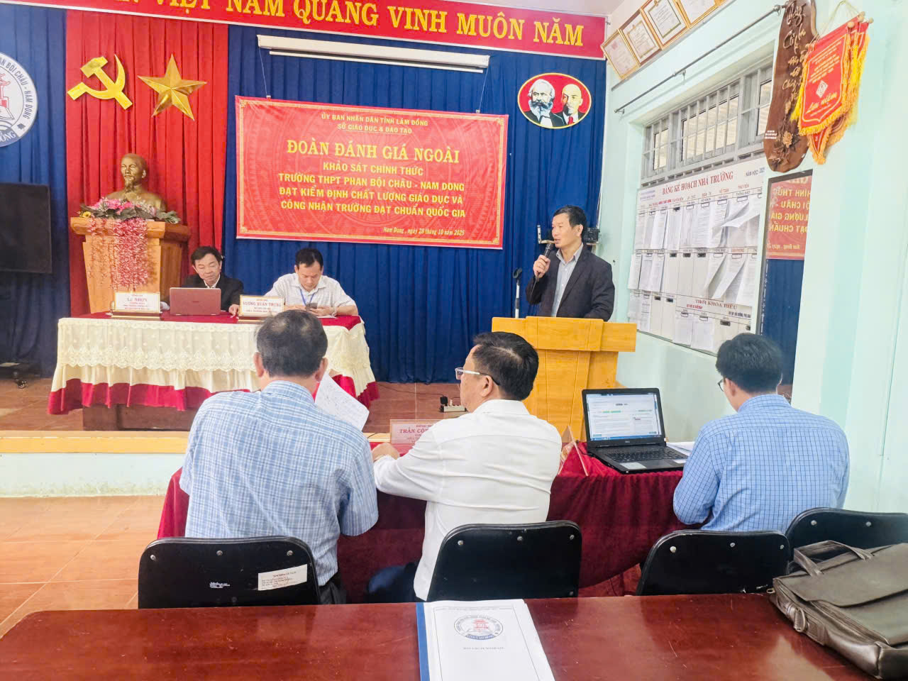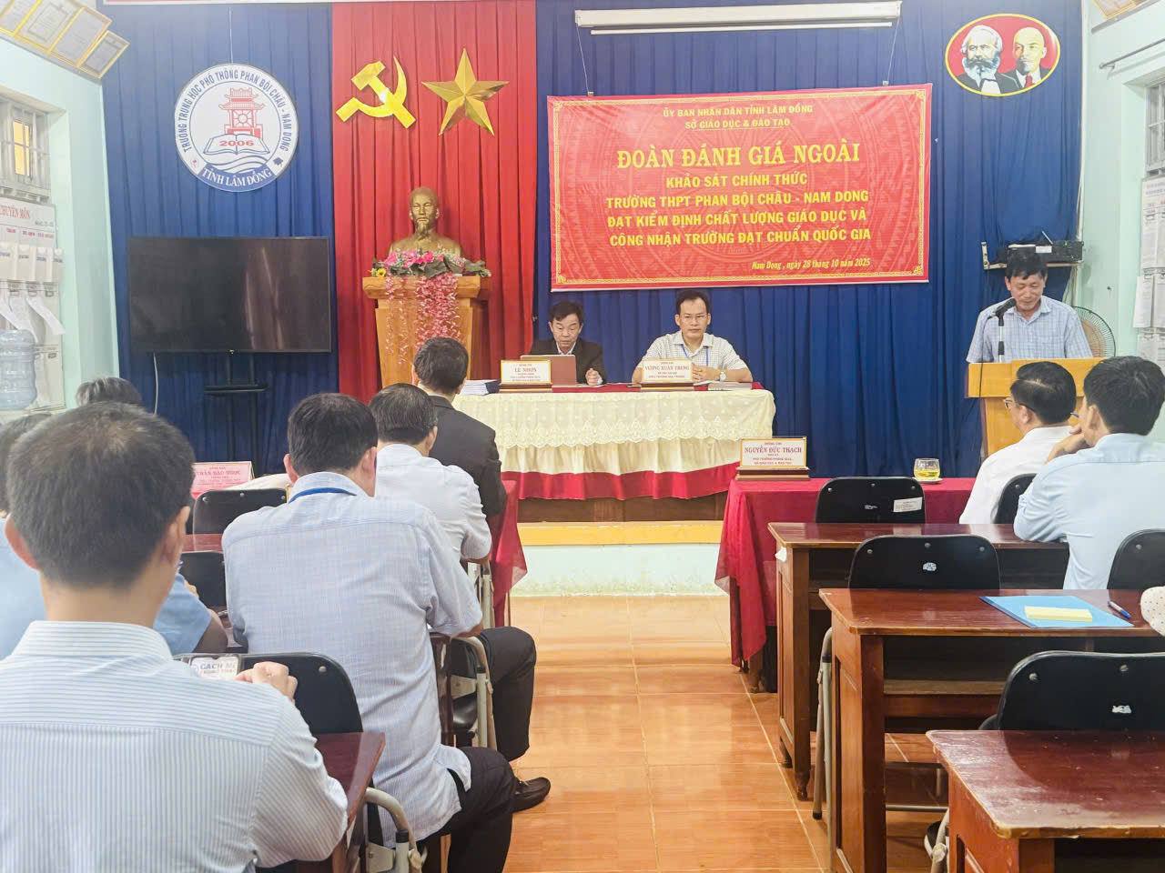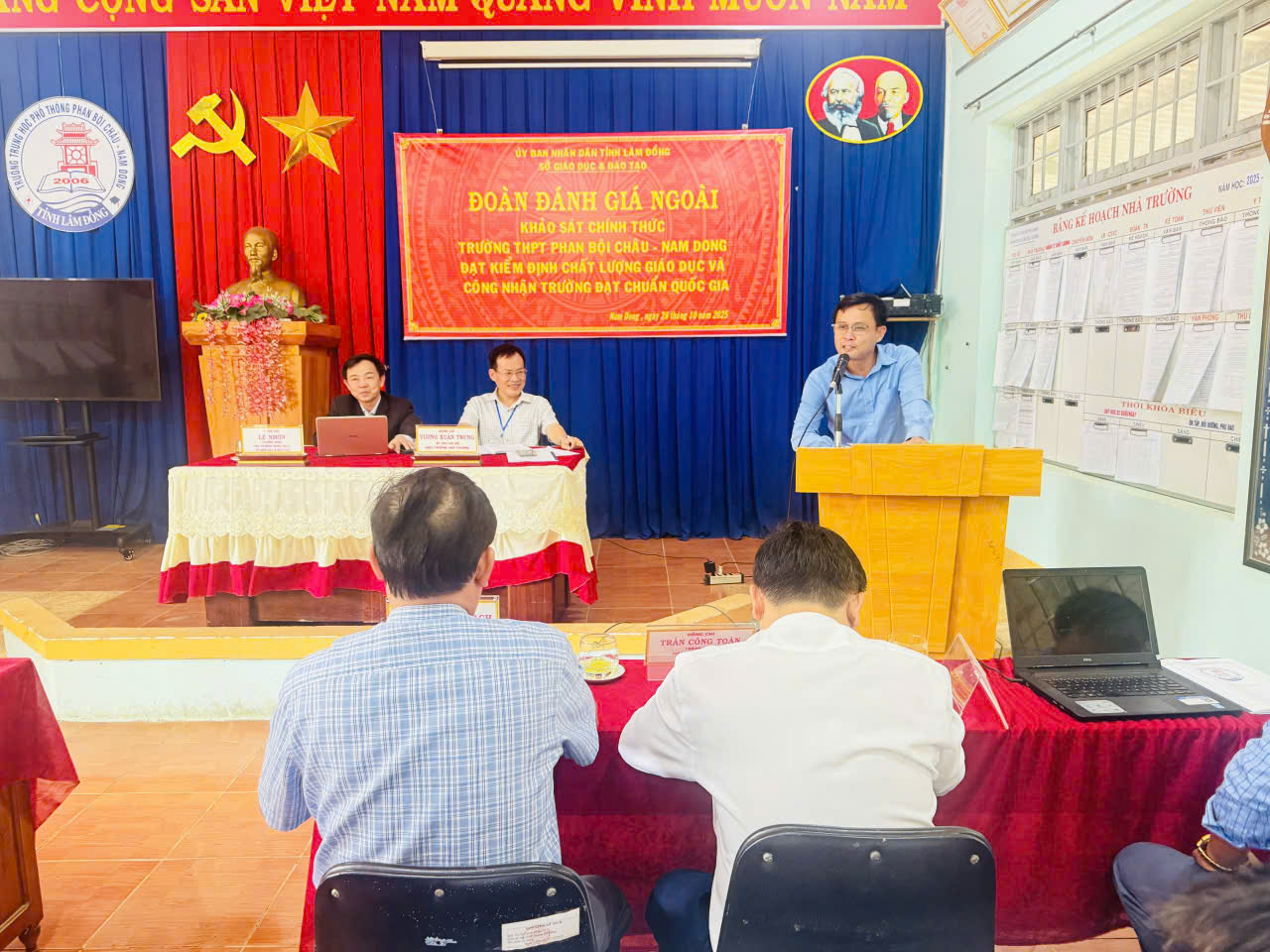 Thực hiện Quyết định 880/QĐ-SGDĐT ngày 10/9/2025 của Sở GD &ĐT tỉnh Lâm Đồng về việc thành lập Đoàn đánh giá ngoài Trường THPT Phan Bội Châu – Nam Dong để Kiểm định chất lượng giáo dục và công nhận trường đạt chuẩn Quốc gia năm 2025. Trong 02 ngày 28-29/10/2025 Đoàn đánh giá ngoài đã về để Khảo sát chính thức để KĐCLGD và công nhận chuẩn. Một số hình ảnh tại buổi khảo sát chính thức ngày 28/10/2025