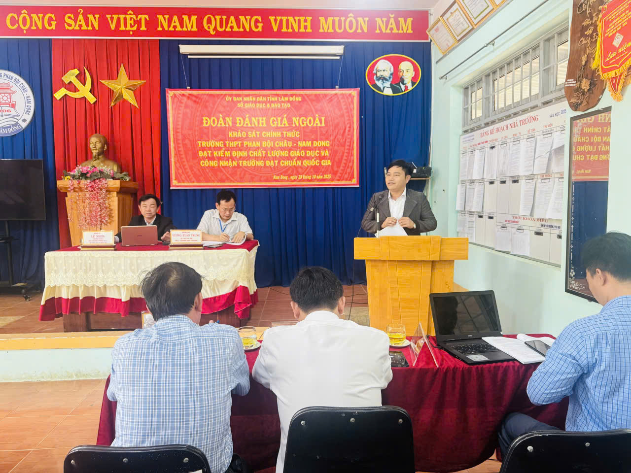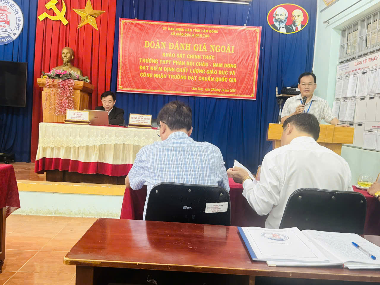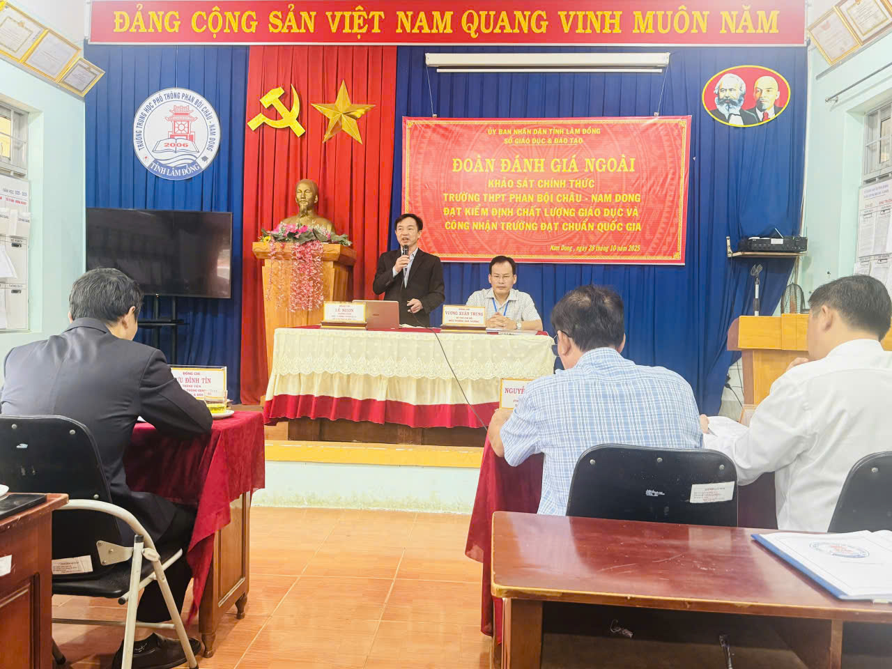 Thực hiện Quyết định 880/QĐ-SGDĐT ngày 10/9/2025 của Sở GD &ĐT tỉnh Lâm Đồng về việc thành lập Đoàn đánh giá ngoài Trường THPT Phan Bội Châu – Nam Dong để Kiểm định chất lượng giáo dục và công nhận trường đạt chuẩn Quốc gia năm 2025. Trong 02 ngày 28-29/10/2025 Đoàn đánh giá ngoài đã về để Khảo sát chính thức để KĐCLGD và công nhận chuẩn. Một số hình ảnh tại buổi khảo sát chính thức ngày 28/10/2025