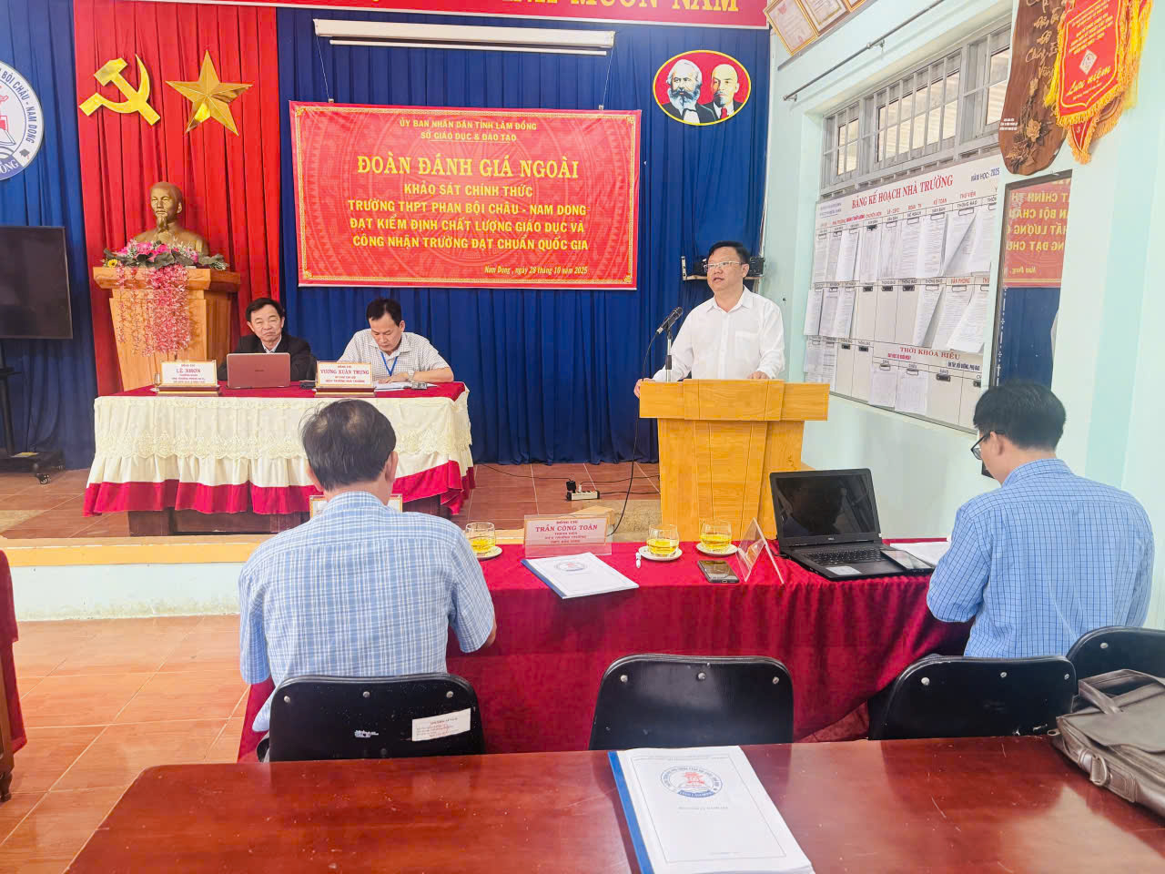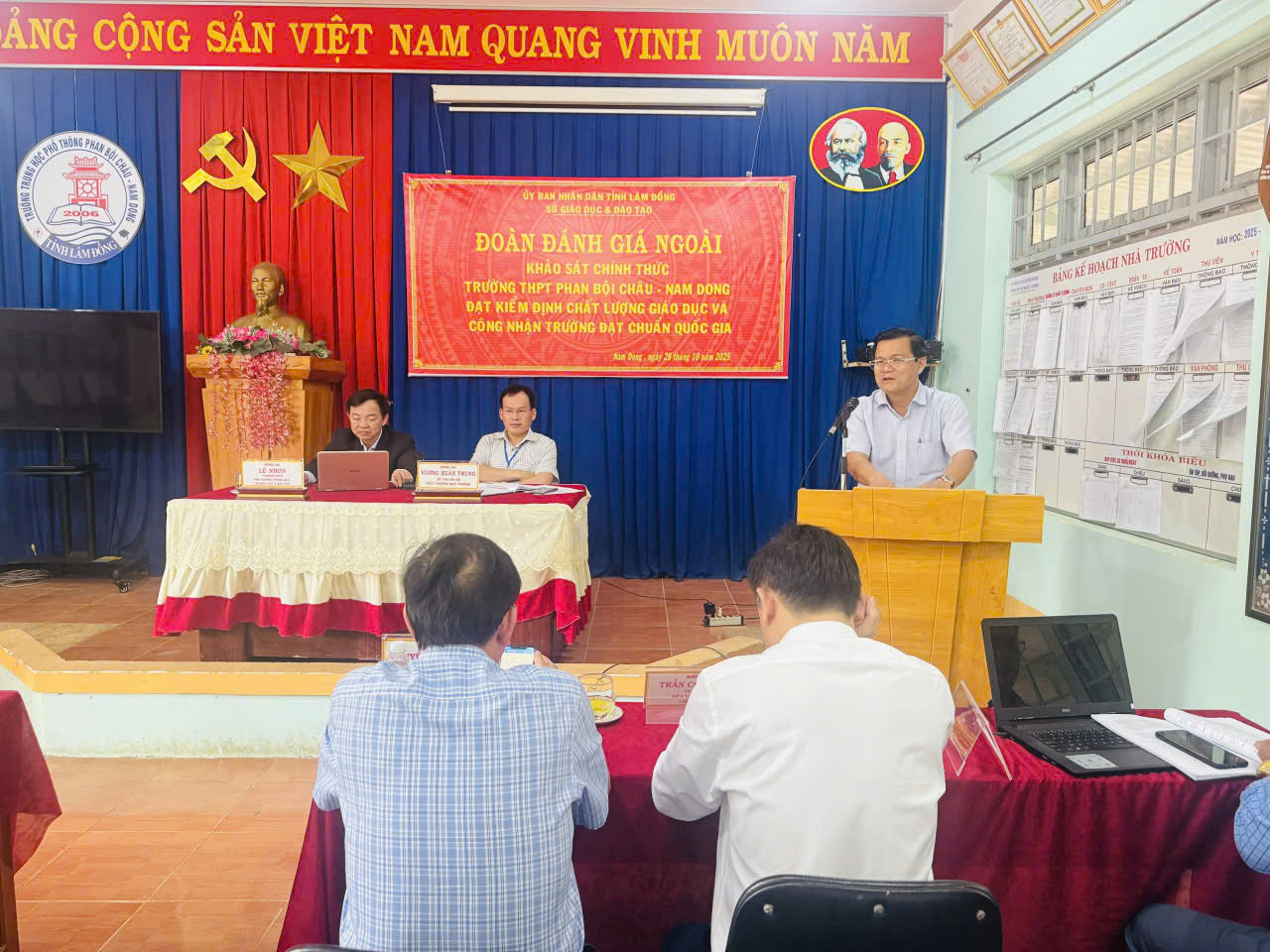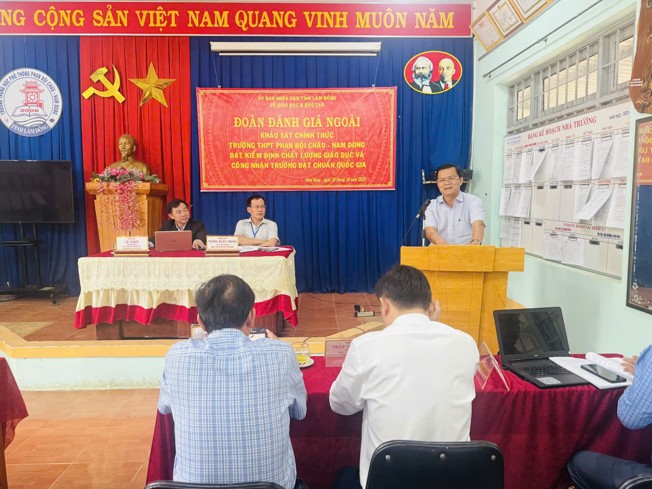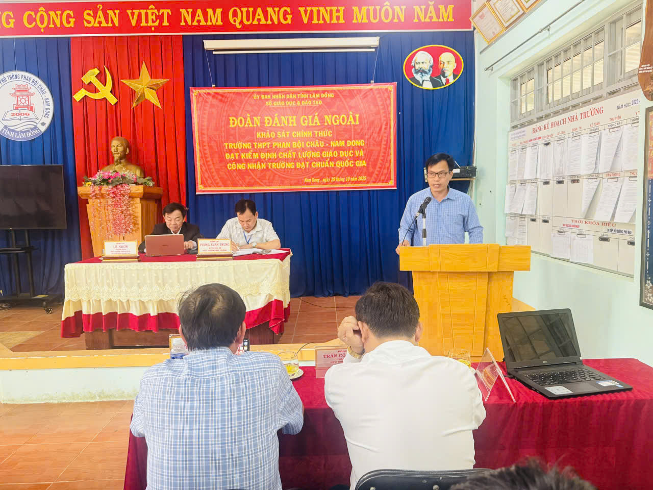 Thực hiện Quyết định 880/QĐ-SGDĐT ngày 10/9/2025 của Sở GD &ĐT tỉnh Lâm Đồng về việc thành lập Đoàn đánh giá ngoài Trường THPT Phan Bội Châu – Nam Dong để Kiểm định chất lượng giáo dục và công nhận trường đạt chuẩn Quốc gia năm 2025. Trong 02 ngày 28-29/10/2025 Đoàn đánh giá ngoài đã về để Khảo sát chính thức để KĐCLGD và công nhận chuẩn. Một số hình ảnh tại buổi khảo sát chính thức ngày 28/10/2025